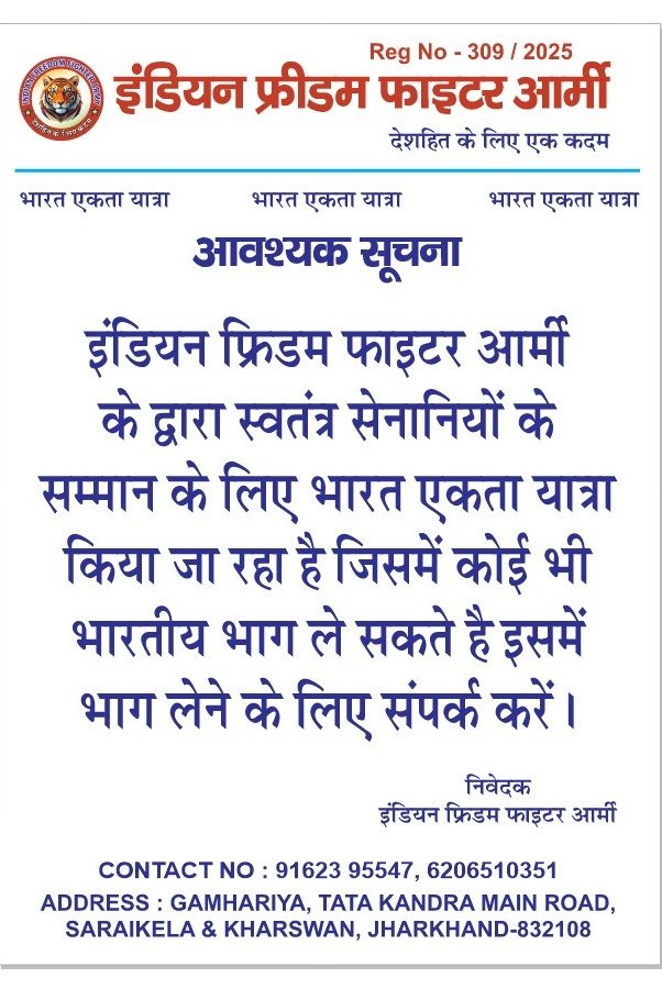 It is with great pride and humility that I address you as the President of Indian freedom fighter army.Since our founding 2024, our organization has been driven by a simple yet profound belief: that every individual, regardless of circumstance, deserves the opportunity to thrive.